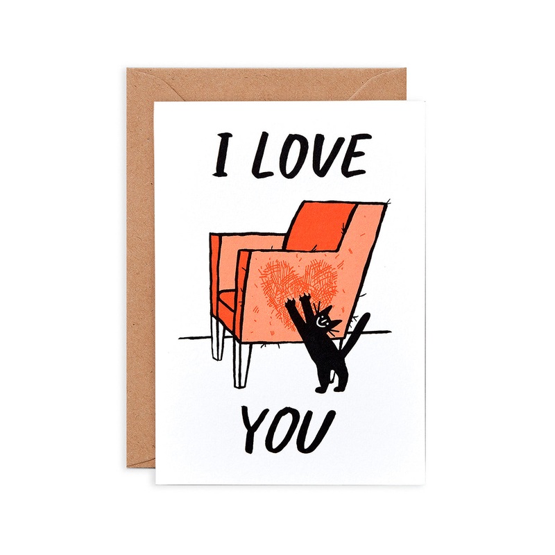 Show someone that they mean as much to you as the arm of your couch means to a playful kitty with the charming Cat Love Greeting Card from Wrap.