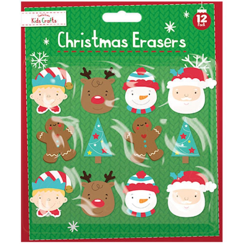 Christmas Characters Erasers: A delightful set of festive erasers. 12 Pack: Includes 12 erasers featuring various Christmas characters. Perfect Gift for Children: Ideal for stocking fillers or Christmas gifts. Each Eraser Measures Up to 4cm x 3cm: Perfect