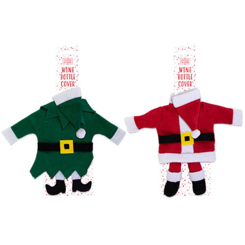 Christmas Novelty Wine Bottle CoverThese Come In Two Assorted Designs, You Will Receive One At RandomIf More Than One Is Purchased You Will Receive An Assortment Of Designs100% PolyesterFits Over Most Standard Sized Wine BottlesIdeal For Christmas Dinner O