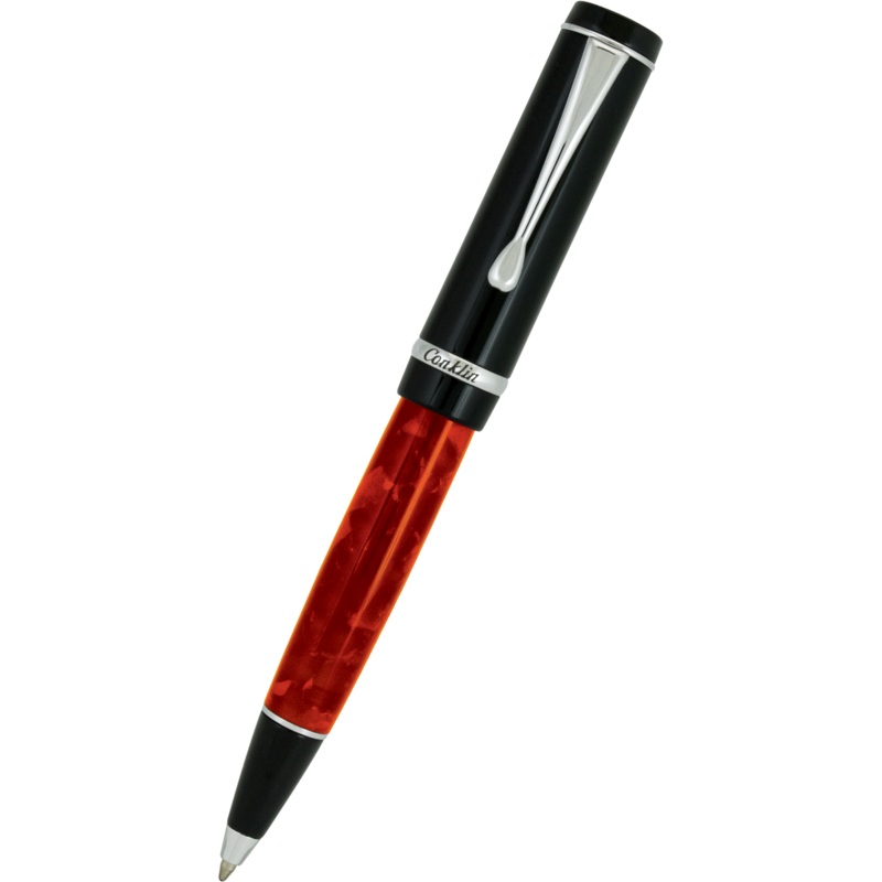 Duragraph was launched in 1923 and shortly afterwards considered to be ‘the definitive’ pen. Named by combining two words, durable and graph. Duragraph collection introduces new Conklin Duragraph Ballpoint Pen that brings a fresh, modern style to a timeless oversize flat top design. The Duragraph offers the ideal choice for your individual handwriting style. This writing instrument is produced from a unique hand-made resin, and each pen features the famous Conklin logo engraved over a brushed metal crown on each cap.