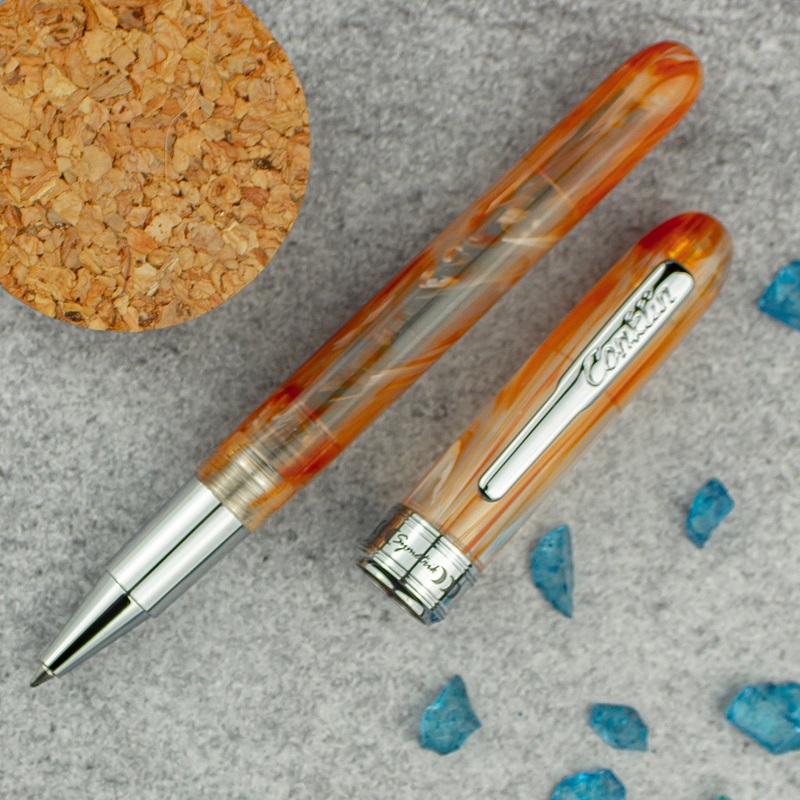 Inspired by the concept of symmetry and balance, the Symetrik collection is designed to look and feel pleasant in hand. Symetrik features a proportional and streamlined body design decorated with lustrous chrome clip, band, and trim that perfectly outlines the shape and details of each writing instrument. The original 1930 patented design included an inlay in the shape of a half-moon on the cap just above the clip and enameled rings. In today’s modern take on this classic, Conklin is proud to present smooth and continuous design making the new Symetrik model one to adore. Unlike the original darker color tones offered in the 1930s Symetrik collection, newly introduced transparent colors feature unique delicate pattern, and appear vibrant and rich. Using a high-quality resin mix, three gorgeous transparent colors were created to enhance the elegance of the collection: Amber, Blue, and White. Built and designed with attention to detail and using durable materials, Symetrik is made to produce an exceptional writing performance that will stand the test of time.