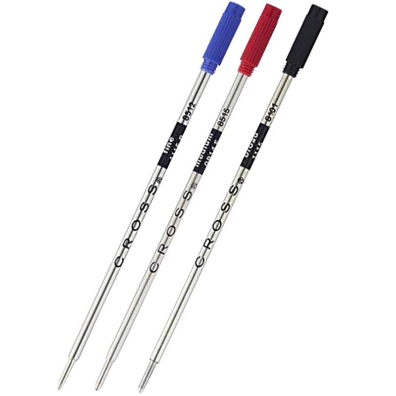 The Cross Standard Ballpoint Refills are compatible with most Cross Ballpoint pens except for the Click, Cross X, Edge, and the Tech3+.They come in both standard blueand black ink with three different nib sizes (fine, medium and broad). There's also a red