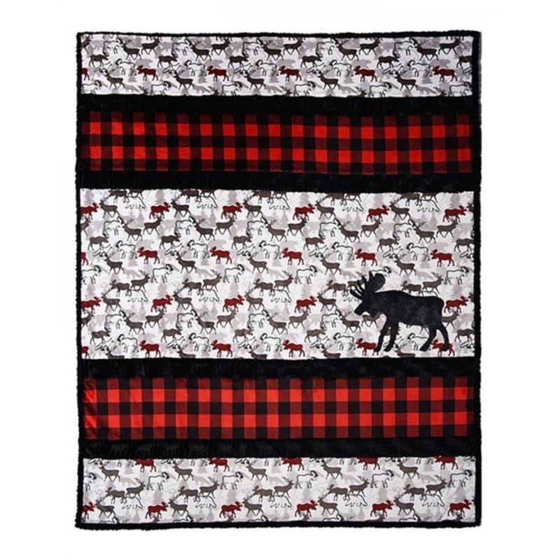 Cuddle Sens Strips A’Moose. This Sensational Strips Cuddle kit includes strips for the quilt top, pattern, & binding. This Sensational Strips Cuddle kit includes strips for the quilt top, pattern, & binding. Approx finished size is 58″ x 68″. Quilt Front Fabric included is Forest Park Scarlet, Buffalo check Scarlet, LCLuna Black, LCHeather Shadow. Binding Fabric is LCLuna Black. Suggested backing for this kit is Scarlet Cuddle3 or Cuddle Dimple. 2 1/4yds of backing fabric is needed.