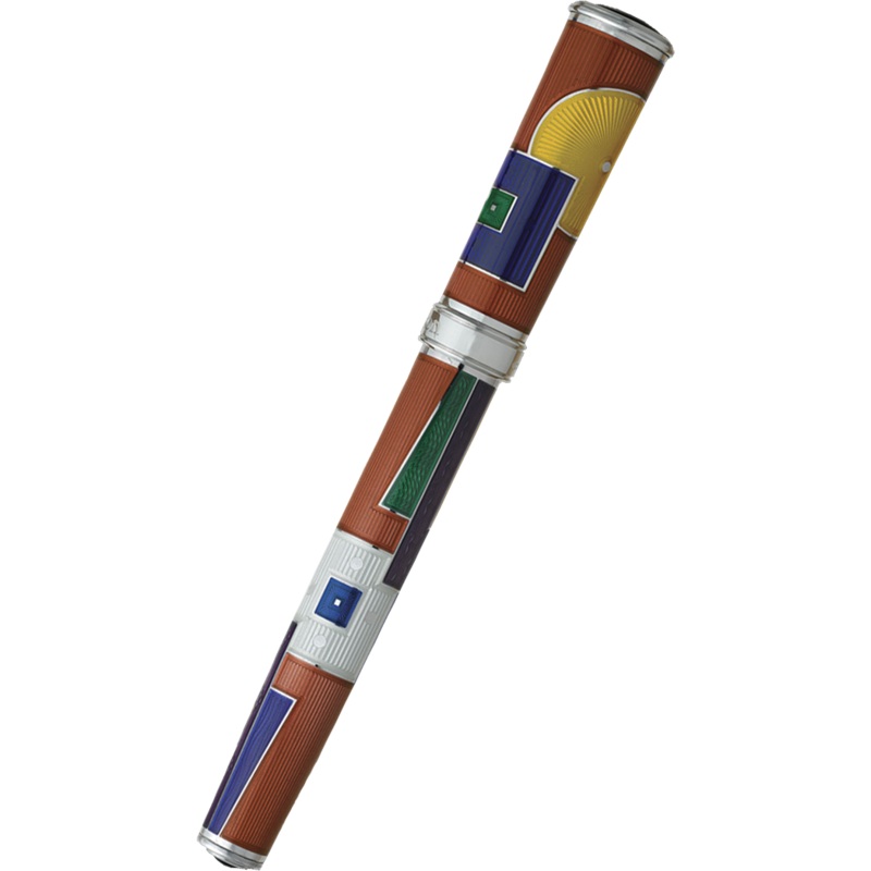 David Oscarson 15th Anniversary/American Art Deco Rollerball Pen -Translucent Citrine with Multi-colored Enamel. The 15th Anniversary collection is a celebration of the American Art Deco motif and 15 years of excellence in design. This collection has incor