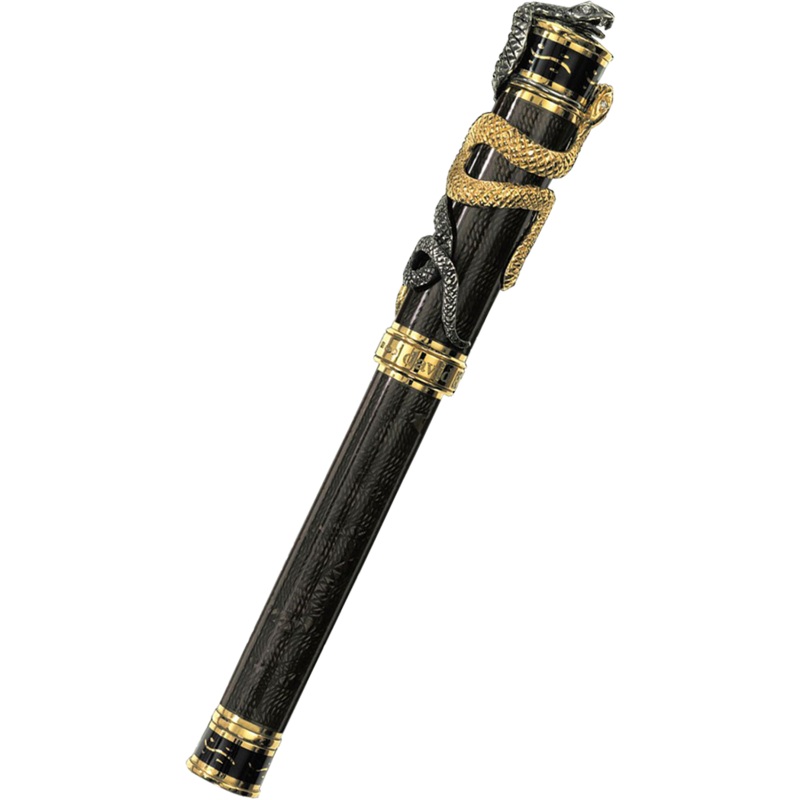 David Oscarson Black Water Snake Rollerball Pen - Translucent Black Moss and Opaque Black Hard Enamel w/ Gold Vermeil.The Black Water Snake series is the twentieth David Oscarson limited edition pens, available in three primary colors. The writing instrume
