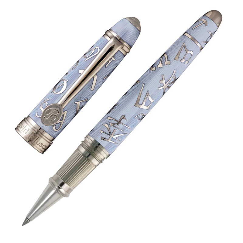 Available inMossy Black,Sapphire Pale Blue, andTeal,the David Oscarson/Pleasure of Writing Lingua Pacifica Collection uses Oscarsons intricate craftsmanship to honor the pen shops storied history and bright future.