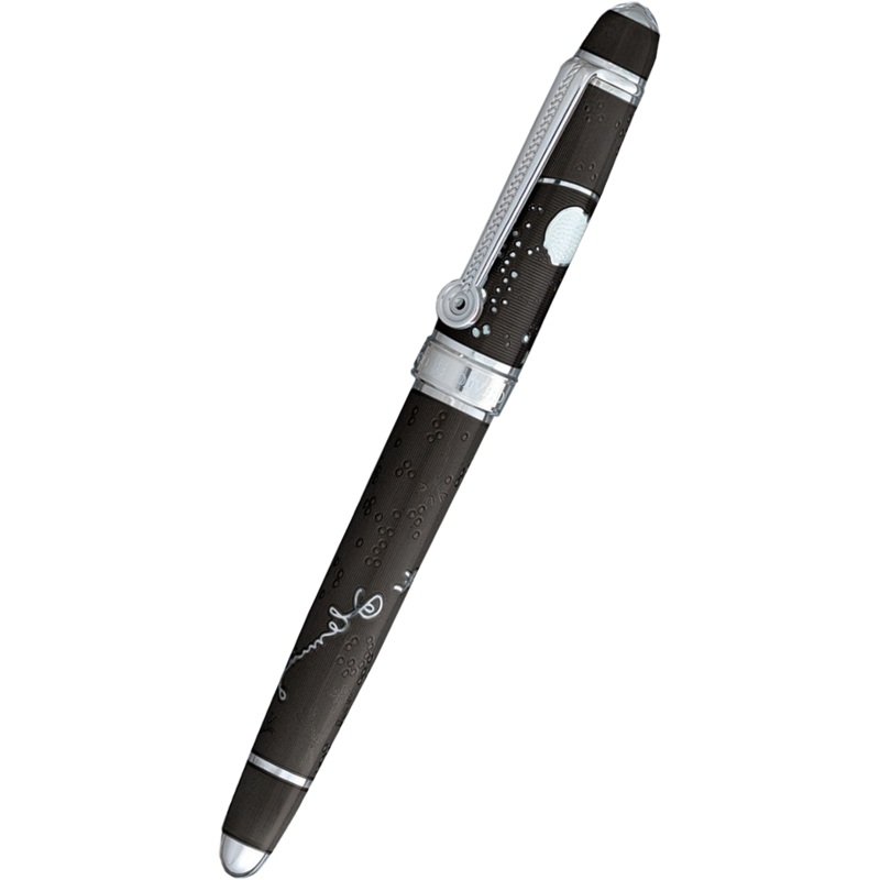 David Oscarson Sir Alexander Fleming Rollerball Pen – Translucent Black.The Alexander Fleming series is dedicated to Sir Alexander Fleming, a Scottish bacteriologist known for his discovery of penicillin. A technical genius and sharp observer, he through his observation, refinement and purification made the firstly discovered as mold, todays Penicillin. His discovery changed the medical world, particularly by its widespread use in the US and British armed service hospitals in World War II. The writing instruments are gorgeously adorned with a rendition of his signature around the pen barrel that represents countless prescriptions that have been written not only by Fleming but also by millions of doctors all over the world. The pen background is imprinted in a vertical motif interrupted by delicate stems branches and spores representing penicillium as it appears under a microscope slide or under the glass. The cap features a reconstruction of Alexander Flemings original petri dish that helped for discovery of penicillin. This twenty third series of David Oscarson shows the expertise of Guilloche engraving and the artistic mastery of hard enamel. This limited edition is produced in three primary colors variations, each color limited to 73 pieces including fountain pens and rollerball pens. The rollerball pen will surely provide unique writing experience with little weight.