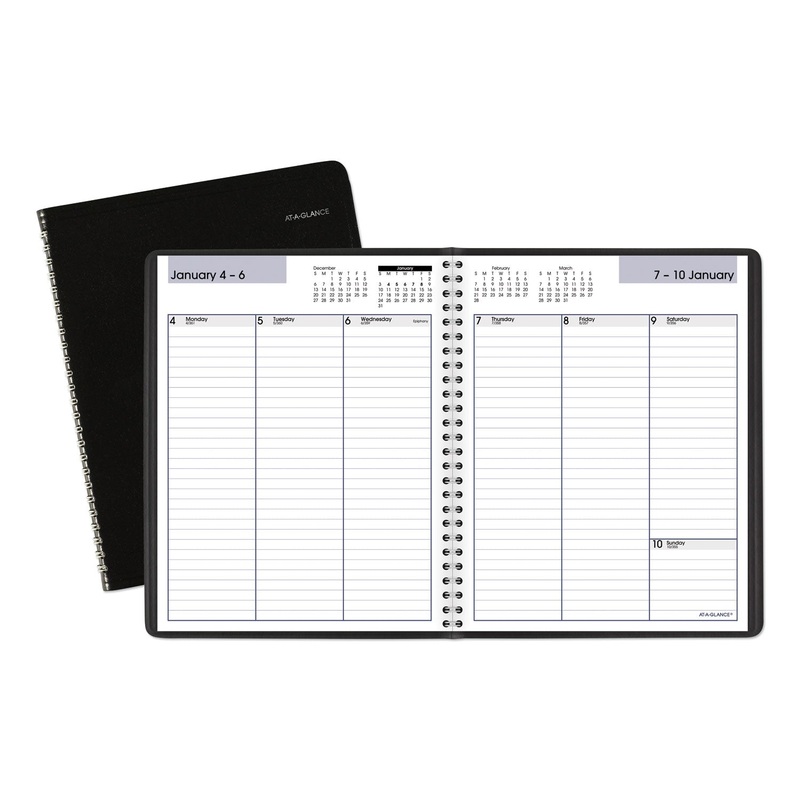 No appointment times - weekly ruled column format allows you to plan your week your way. One week per two-page spread; ruled column-style for open scheduling; past, current and two future months reference. High-quality paper with superior ink bleed resista