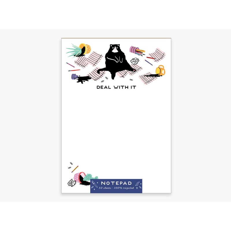Gotta Deal With theTo-Do ListTheweary cat notepad will make you smile every time you jot a note.Measures 4.25" x 6"50 sheets100% Recycled paper and cardboard backingMade in USA
