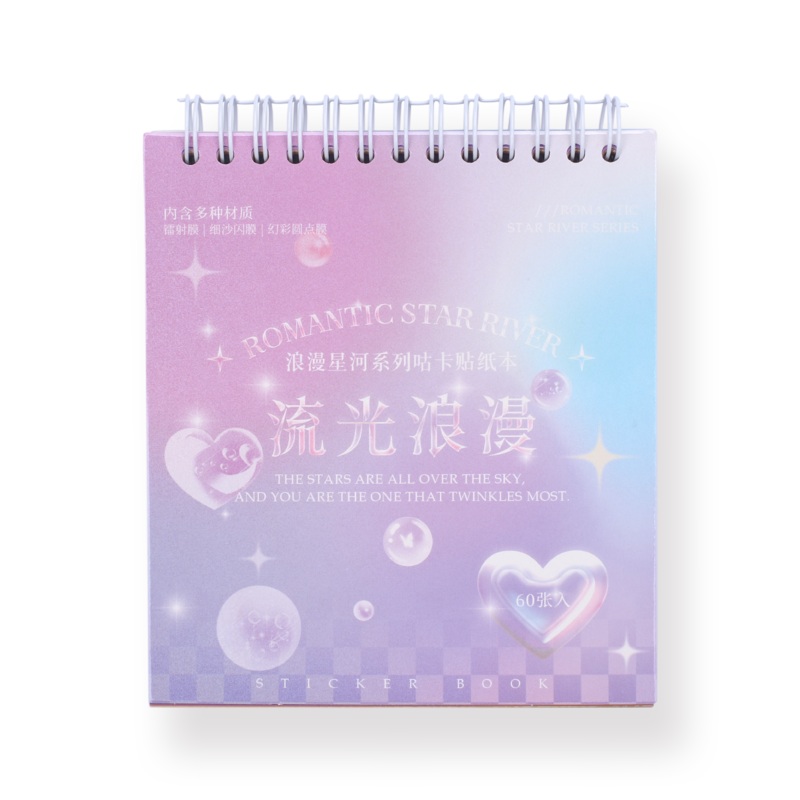 Introducing a deco sticker book. What sets this sticker apart is its glittered and translucent design. The sticker is coated with a layer of sparkling glitter that catches the light and adds a magical touch to the artwork. The translucent quality allows the sticker to blend seamlessly with any background, giving it an ethereal and enchanting appearance.