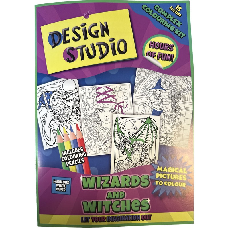 Magical Theme: Enter a world of spells and sorcery with 18 detailed posters featuring wizards, witches, and enchanting scenes. Creative Set: Includes 4 colouring pencils to bring each magical illustration to life straight out of the box. High-Quality Paper