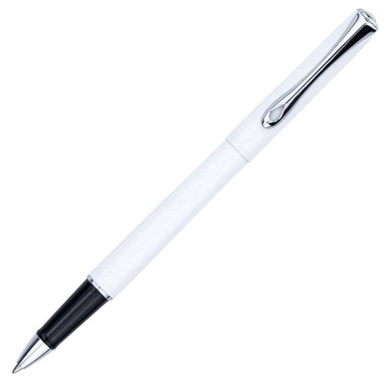 Diplomat's Traveller range are slim, compact writing instruments, available in a variety of high-quality finishes. White barrel with chrome trim and polished metal clip. A Diplomat logo in the end of the cap completes the details.Black InkMedium pointrefil