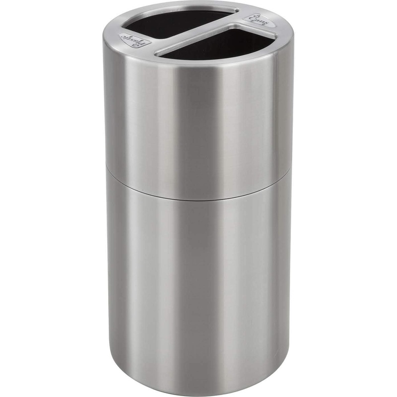 Features:Recycling receptaclesRemovable lidIncludes two separate linersSatin finishDecals included plastic, cans, paper and waste15 gallon capacity per binSpecifications: Material: AluminumColor: Stainless SteelAssembly Required: NoTools Required: NoGreeng