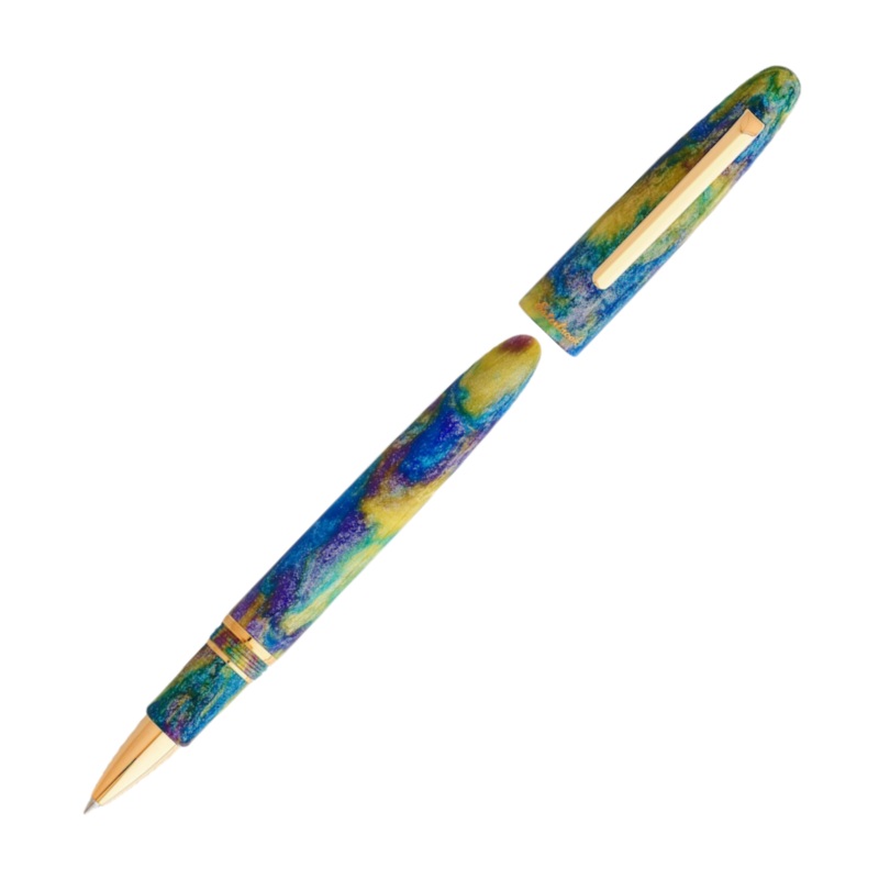 To illuminate the magnificent colors of the peacock, the Diamondcast material for these writing instruments was developed in collaboration with McKenzie Penworks and gleams just like the glimmering feathers of this majestic bird. Available in rollerball, standard and oversized fountain pens, the Peacock Estie is available in extremely limited quantities, making it just as rare as the glorious avian it represents.