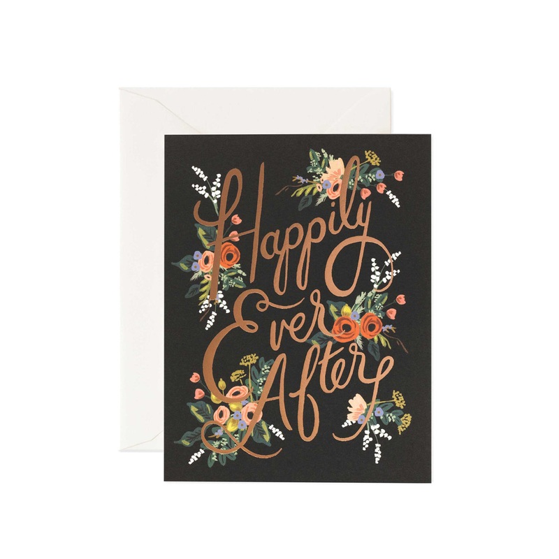 Send a delightful message to the happy couple on their special day with the whimsical typography and floral beauty of the Eternal Happily Ever After card from Rifle Paper Co. This illustrated card is blank inside and comes with its own high quality envelop