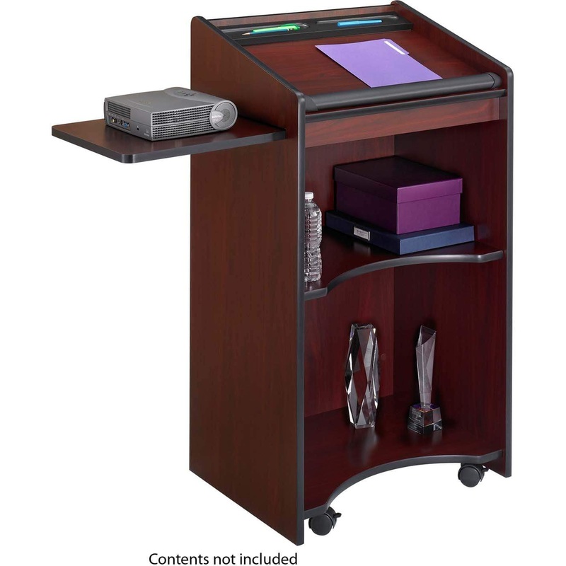 Command attention with the Safco Executive Mobile Lectern. Stately and sturdy, this mobile lectern with a pull-out side shelf is the perfect way to present a professional image. Whether you are presenting at a conference or giving a speech at a local colle