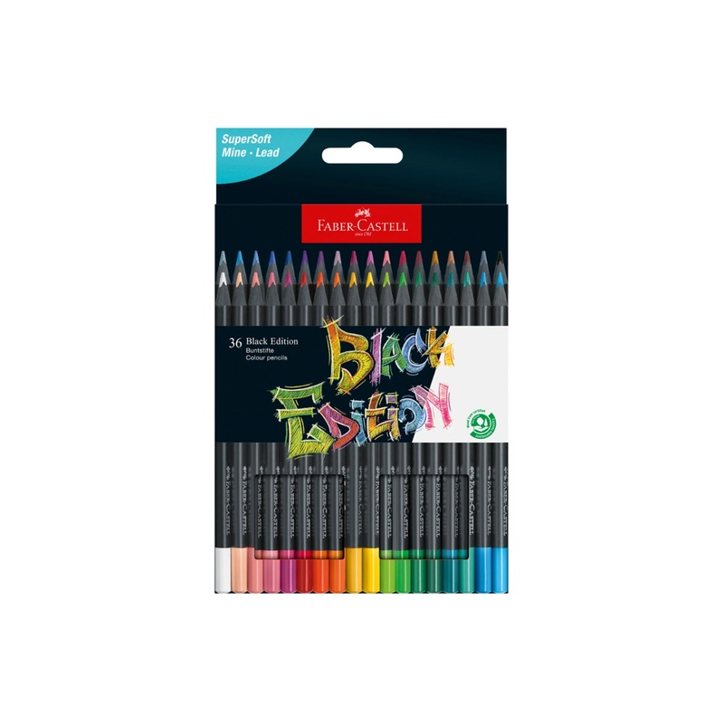 36 Black Edition Colored Pencils made with sleek black wood have a wonderfully smooth and vibrant color laydown, thanks to their super soft lead. The high pigmentation of the lead makes them versatile ideal for drawing techniques on light, colored and dark paper.