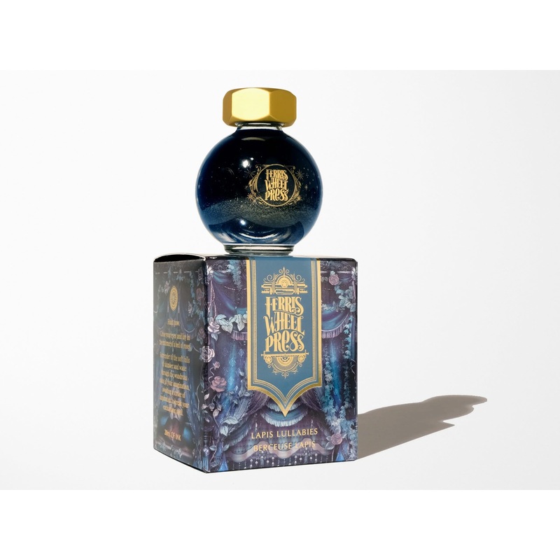 Medium Blue with Red Sheen and Champagne ShimmerFall in love with writing again. Unusual shades of fountain pen ink from Ferris Wheel Press stir the imagination and help you express written ideas through color.Captured in the brand new 20ml miniature glass