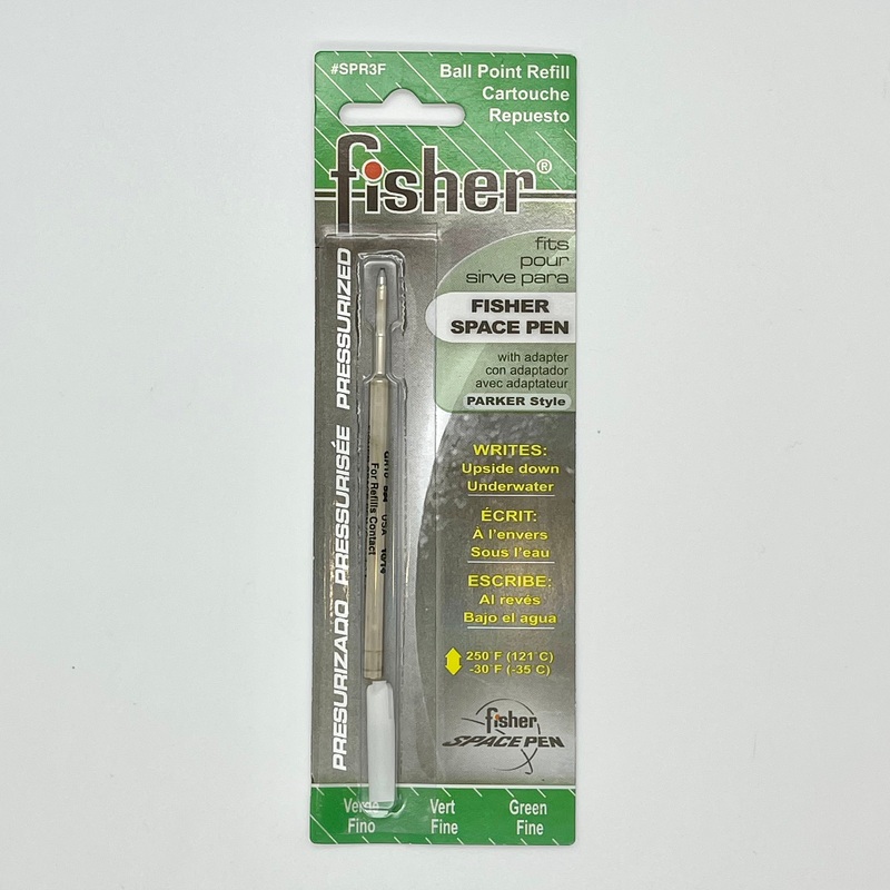 The Space Pen pressurized refill features a tungsten carbide ball encased in a steel ball socket that prevents leaking and is designed to almost perfection. Pressurized at nearly 35 pounds per square inch so that ink is continuously fed and contains a visco-elastic, thixotropic solid-gel ink. With approximately 12000 feet of ink based on write-out machine testing, lasts 3 times longer than typical ballpoint refills.
