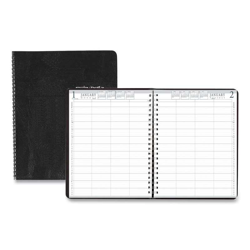 Each page has four columns, one for each person, to schedule appointments in 15-minute increments. One page per day. Eight-month reference on each spread for ease of scheduling. Includes a double-sided storage pocket. Three-year calendar reference page and important holiday dates for long-range planning. Made entirely of recycled materials. Dated/Undated: Dated; Calendar Format: Daily; Page Format: One Day per Page; Edition Year: 2024.