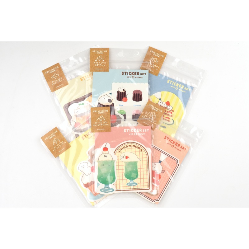 Furukawa Paper Stickers - Sweets Animal Workshop - Cream - Set of 3This sticker set is part of the second edition of the popular Sweets Animal Workshop, now with a cream theme. Featuring adorable animals dreaming of becoming cream, the three sheets are per