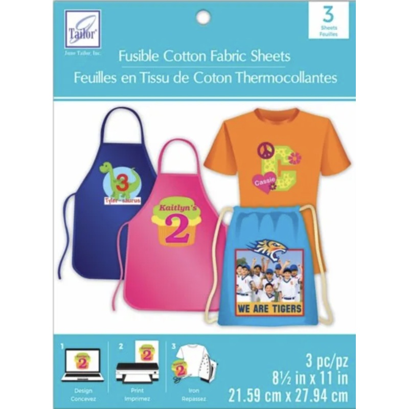 Personalize t-shirts, denim, tote bags and more anything you can touch with a hot iron.Size:8-1/2 x 11 SheetsKey Features:White, cotton fabric with a fusible backing to press onto any surface that can be ironedPrint your favorite photos, graphics and text