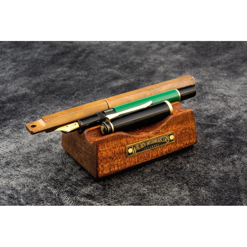 Spruce up your work desk with our handcrafted pen holder. It’s stylish and professional and makes a perfect gift for the office worker or artist. ‘The Pen Rest’ is made from solid mahogany wood and comes with three pen slots. It holds most varieties of pens and brushes, including Fountain Pens and looks so stylish sitting next to one of our leather desk mats on your work table.