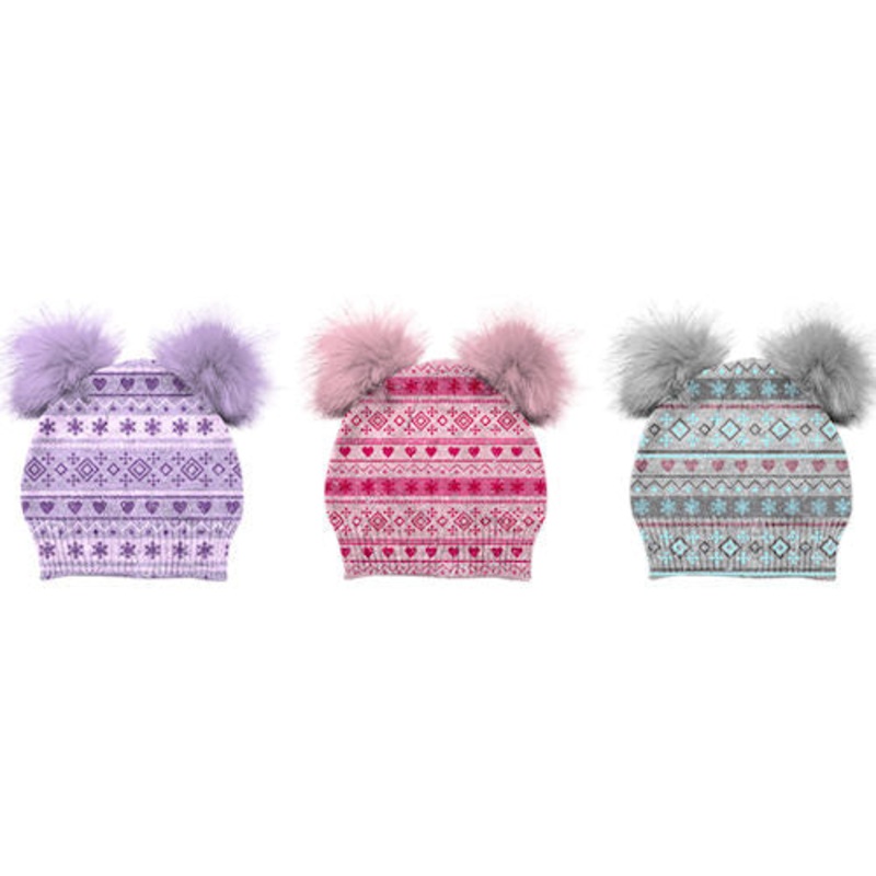 Girls Lurex Pom Pom Trim Hat: Keep her warm and stylish with our sparkly hat. Sparkly Pom Poms: Features pom poms with a touch of sparkle. Machine Washable: Easy care - can be machine washed at 30 degrees. Assorted Colours: Available in three colours for a