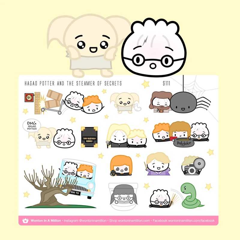 Decorate your planners, scrapbooks, bullet journals and more with this adorable sticker sheet featuring the Shrimp Dumpling family! It’s said that to judge the skill of a dimsum chef, you look at how they’ve made a shrimp dumpling: its skin should be translucent but not break when you pick it up, and the skin shouldn’t stick to the steamer or to the other shrimp dumplings in the basket. Shrimp dumplings are a MUST HAVE at dimsum (and in your sticker collection!)