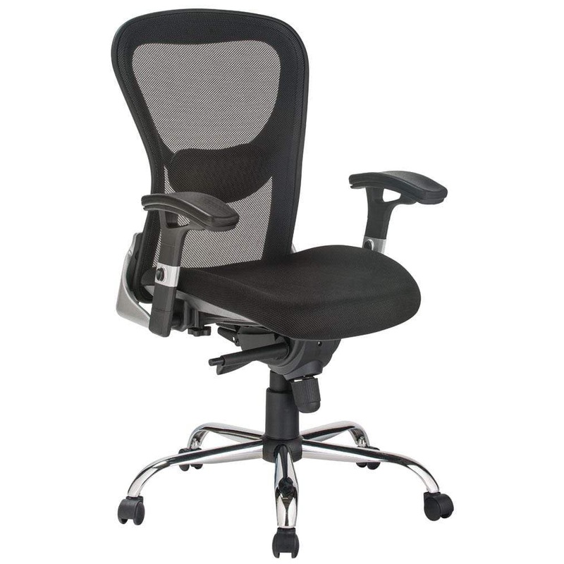 This comfortable mesh office chair from Harwick features ergonomic support for your spine and lower back with an adjustable lumbar area that moves up and down as well as in and out to increase or decrease the lumbar area support.Other notable features incl