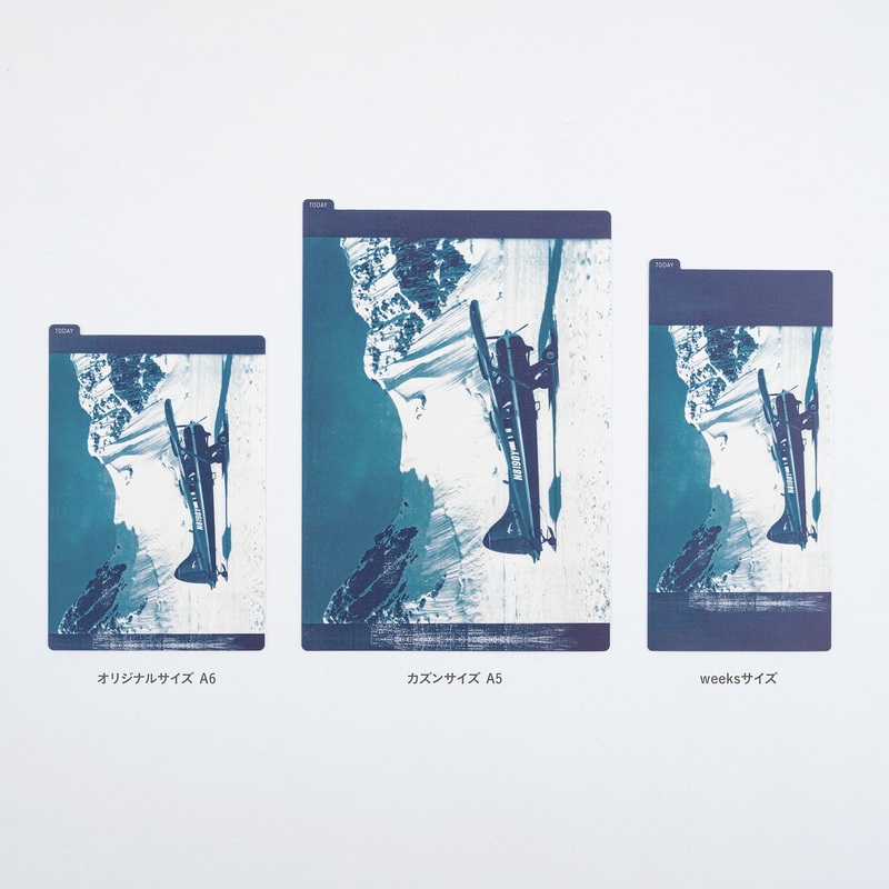 This pencil board features a piece by Naoki Ishikawa titled Denali in the Midnight Sun #2. Denali, North Americas highest peak, attracts people from all over the world. This is a shot of the Cessna that the climbers who are aiming to reach the summit of the mountain ride to the Kahiltna Glacier at the foot of the mountain. It is said that only bush pilots, who are skilled in landing on rough terrain, are allowed to fly this Cessna.Tools & Toys is a series of original stationery and accessories that go great with the Hobonichi Techo. These fit perfectly to the size of the techo book and provides a comfortable writing experience. The Today tab on the corner marks the current page if youd like to use it as a bookmark as well. Naoki Ishikawa captured this stunning image of the Cessna aircraft that transported him to Denali. There’s a charming remnant of the developer fluid you can see as applied to the original photograph.