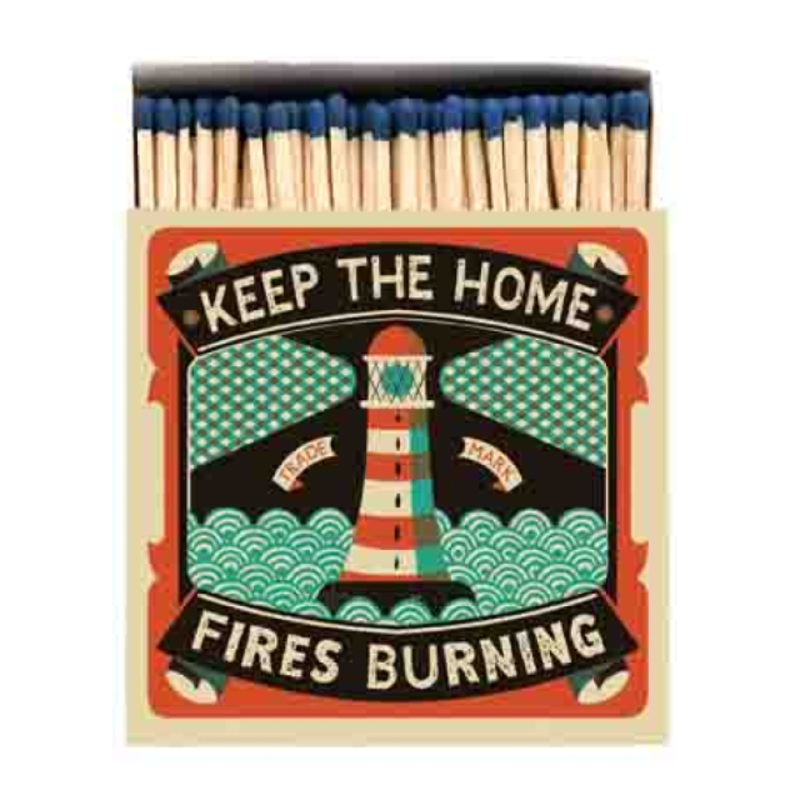 // Letterpressed match box by Archivist// Contains 100 matches, each measuring 100mm long// Measures 110 x 110 x 50 mm