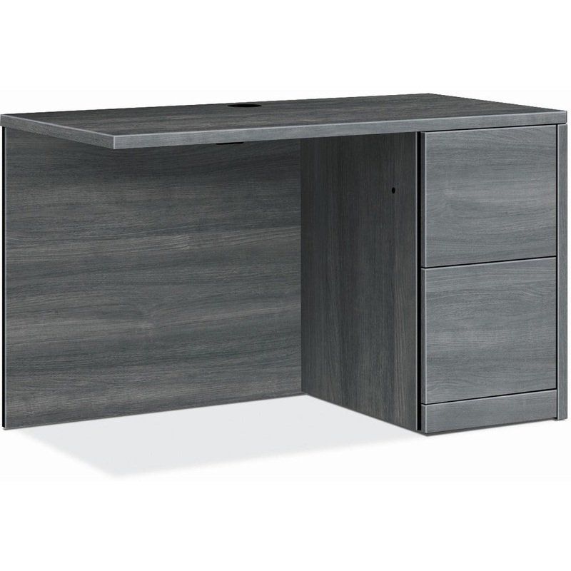 Return with single pedestal must be used with left-pedestal desks, desk shells, peninsulas or corner units in the HON 10500 Series Wood Laminate Furniture, a versatile collection for any office arrangement. Smooth, flat edges and a full modesty panel deliv