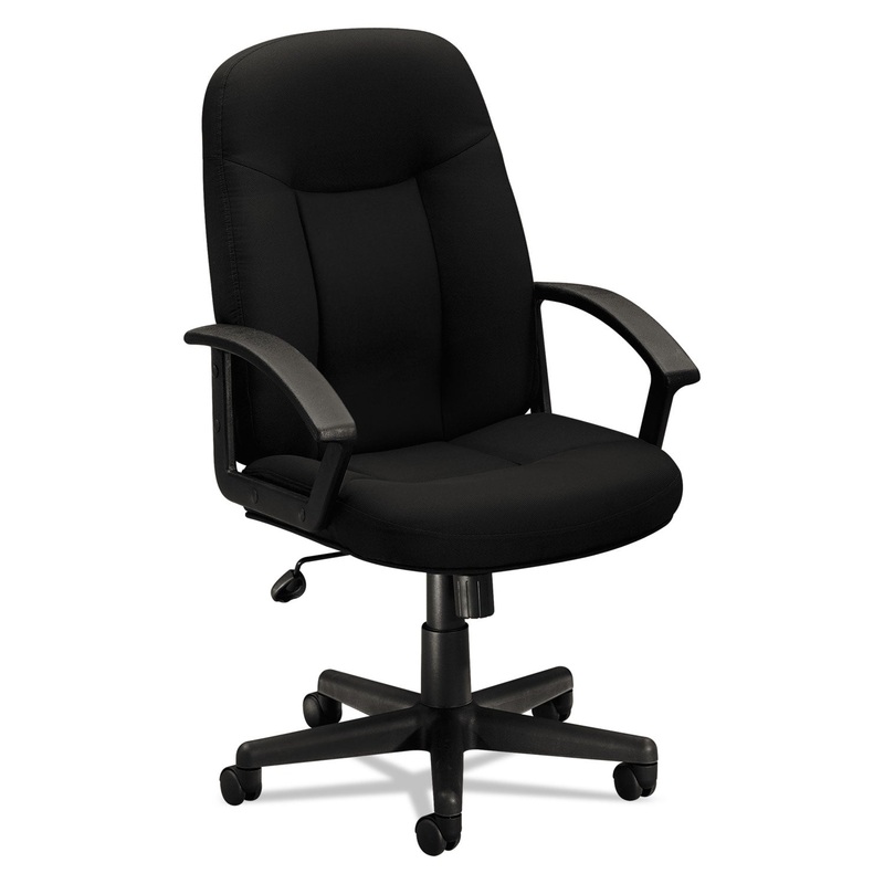 Adjustable seat height provides comfort to all users. Rotates for mobility. Sturdy textured metal frame ensures strength and stability. Recommended Application Area(s): Executive & Management; General Office & Task; Seat Color: Black; Back Color: Black; Color Family: Black.