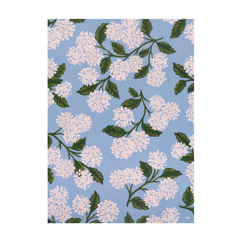 The beautiful original illustrations and designs from Rifle Paper Co. have made Rifle world famous among lovers of paper goods and design. Add a special finishing touch to your gifts with this wonderful wrap from Rifle Paper Co. that features designer Anna Bond’s classic illustrations. This beautiful wrapping paper features the Hydrangea floral print on a pale blue background. Perfect for wrapping gifts, using as drawer liners or for special art projects. All Rifle Paper Co. wrapping paper is printed on high quality FSC-certified paper stock.