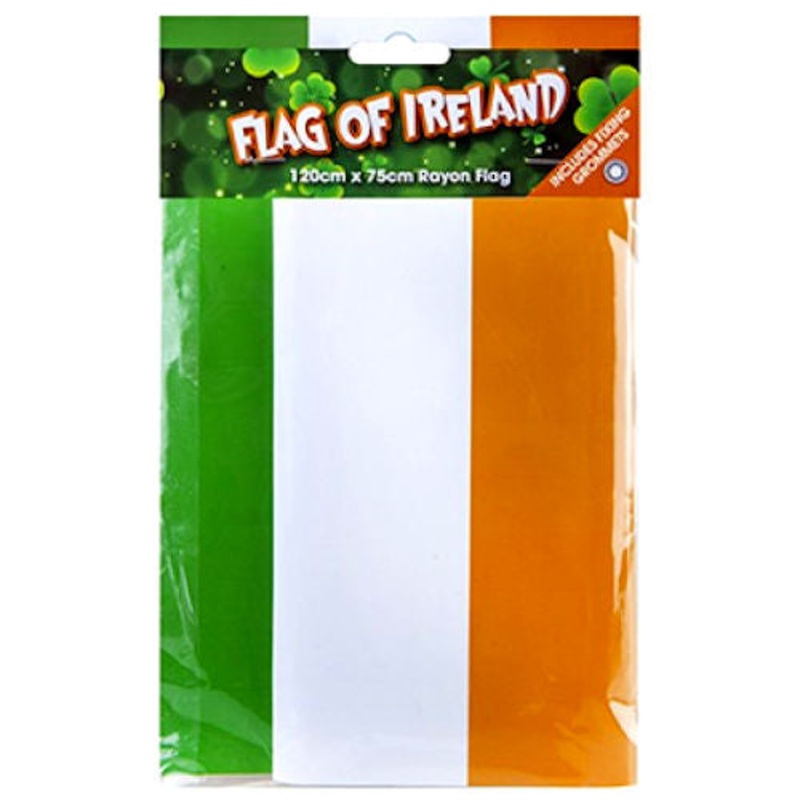 Ireland Rayon Flag With Grommets: Display your Irish pride with this high-quality flag featuring grommets. 120cm x 75cm: Generously sized at 120cm x 75cm, perfect for outdoor and indoor use. Celebrate St. Patrick's Day: Add a festive touch to your celebrat
