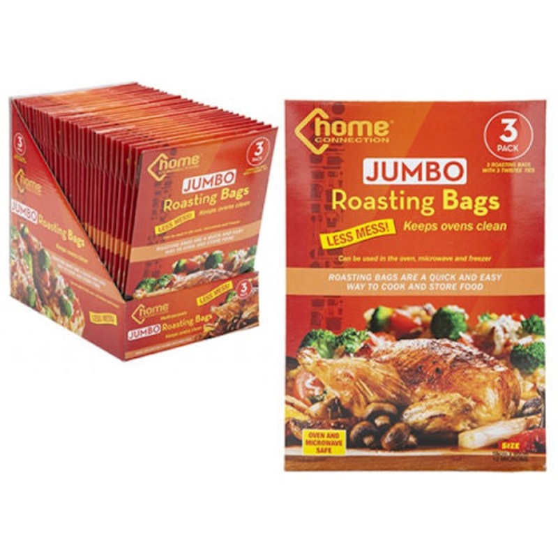 Jumbo Roasting Bags: Pack of 3 roasting bags, each including ties for secure closure. Quick & Easy Way to Cook & Store Food: Simplifies cooking and storage process for convenience. Keeps Meat Moist & Juicy: Seals in moisture for tender and flavourful resul