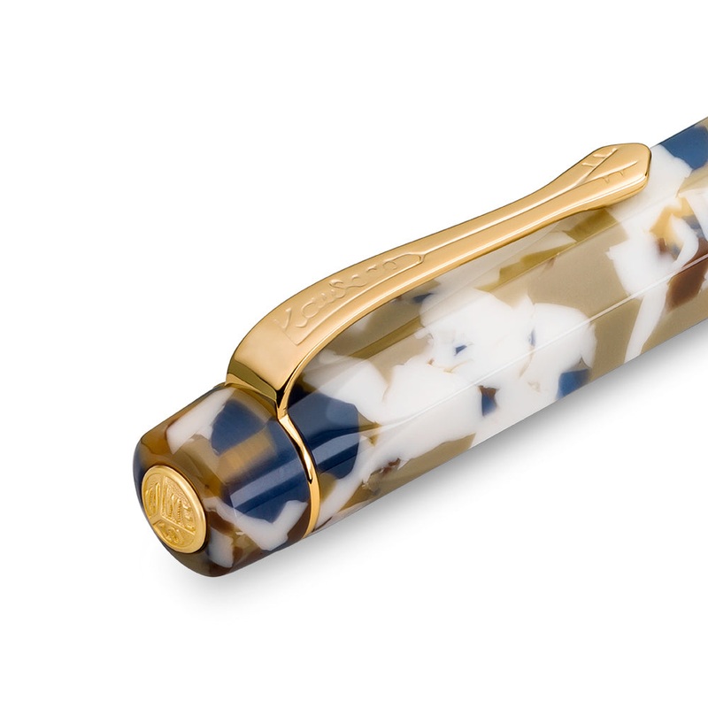 A fountain pen full of personality and exciting mosaics the Kaweco Art Sport enchants with colorful mosaic inlays reminiscent of traditional Terrazzo flooring. The contrast between the crme-colored base material and the vibrant play of colors makes this Kaweco fountain pen a true luxury eye-catcher. The glossy, highly polished surface of the high-quality acrylic adds to the allure. Each Kaweco Art Sport fountain pen boasts unique textures created through an artful pouring process, ensuring no two pens are alike. Gold-plated elements enhance the warm appearance, perfectly complementing the cozy color combination. The permanently mounted clip guarantees a secure hold, whether on the go or on a writing pad.