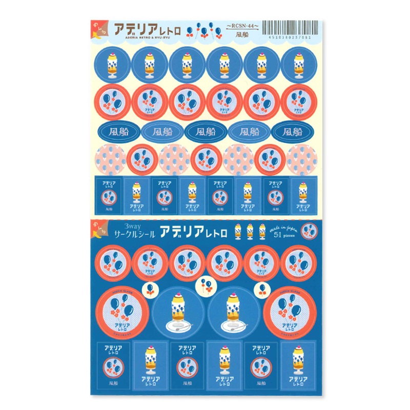 KITERA 3 Way Circle Stickers – Balloons. Designed to be enjoyed in 3 separate ways, the set is perforated through the center into two halves withseparate adhesive backs. Share with friends, transfer theentire sheet into your notebook, or stack half sheets for mini-notebooks!