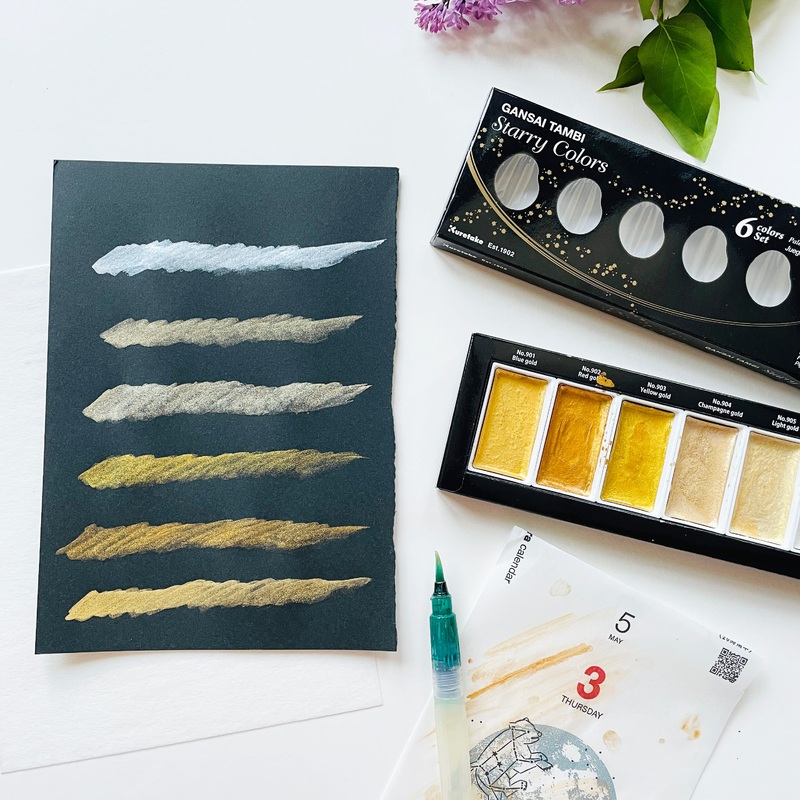 Kuretake Gansai Tambi Japanese watercolors were designed for professional artists and crafters. This beautiful shimmering watercolor palette is not only leave a nice and vivid result on darktone paper but also light tone paper such as white paper.