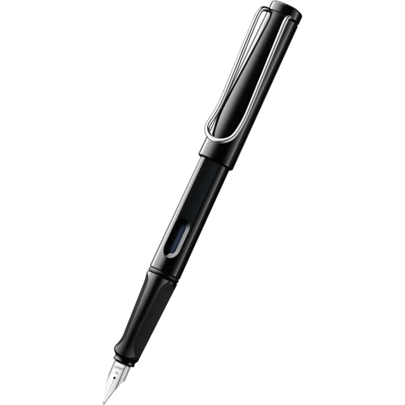 This shiny black safari comes with an interchangeable silver steel nib, which can be easily swapped out for another size. This fountain pen comes with a blue LAMY ink cartridge so you can get started writing right away.