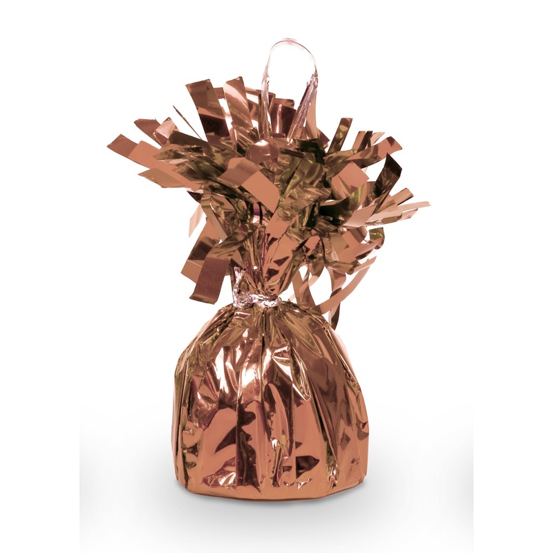Colour: Rose Gold Weight: 160g Decorative Function: Perfect for adorning tables and securing helium balloons, adding a touch of elegance and sophistication to your event decor. Premium Quality: Crafted from durable metallic foil, this balloon weight ensure