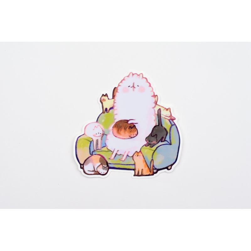 Lazi Sooz Cat Couch Sticker. A cozy time on a couch surrounded by kittens, what more is there to ask for?Includes 1 stickerStickerdimensions:~3" x 3"Sticker materials: Matte vinylMore LAZI SOOZLAZI SOOZ is a Brooklyn based stationery and art shop run by Su