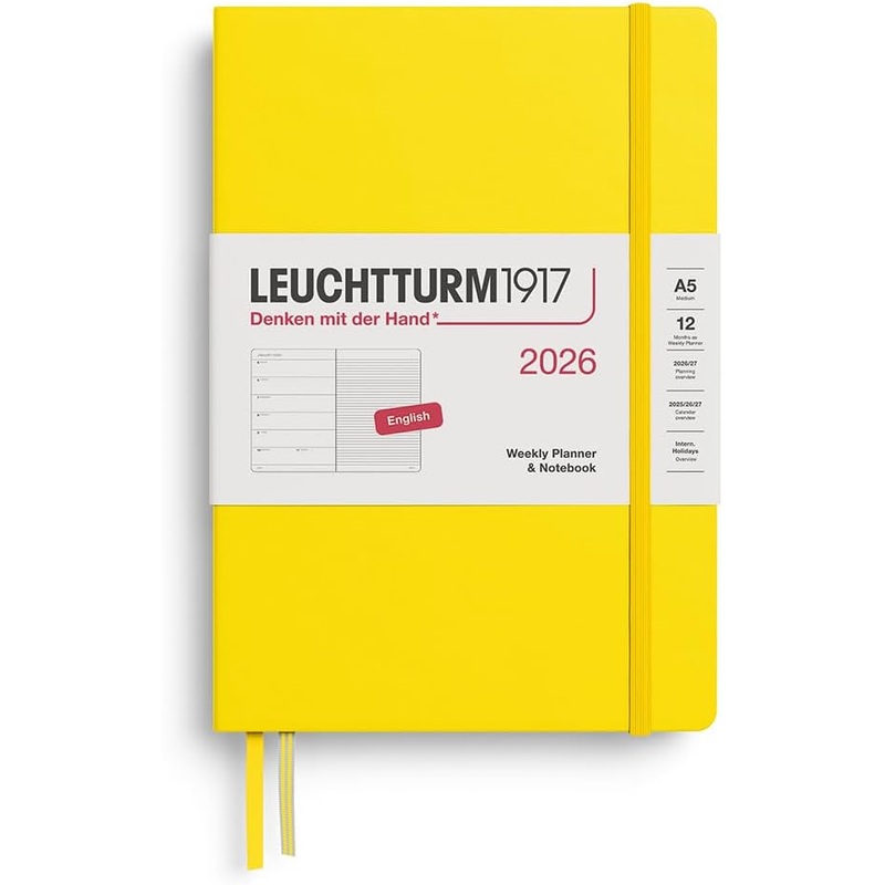 Leuchtturm1917 2026 A5 Weekly Planner & Notebook Ruled – Lemon