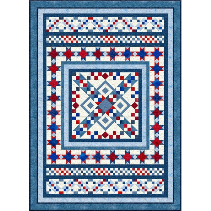 Designed by Wilmington Prints, Liberty Quilt is a twin-sized quilt created with Wilmington Essentials Fabrics. Perfectly sized at 61 x 85 for a Throw Size or Twin Size bed, this quilt also meets the specifications for a Quilts of Valor presentation. Vibrant reds & beautiful blues are combined with off-white, sky blue, navy, and comforting faded denim blue.