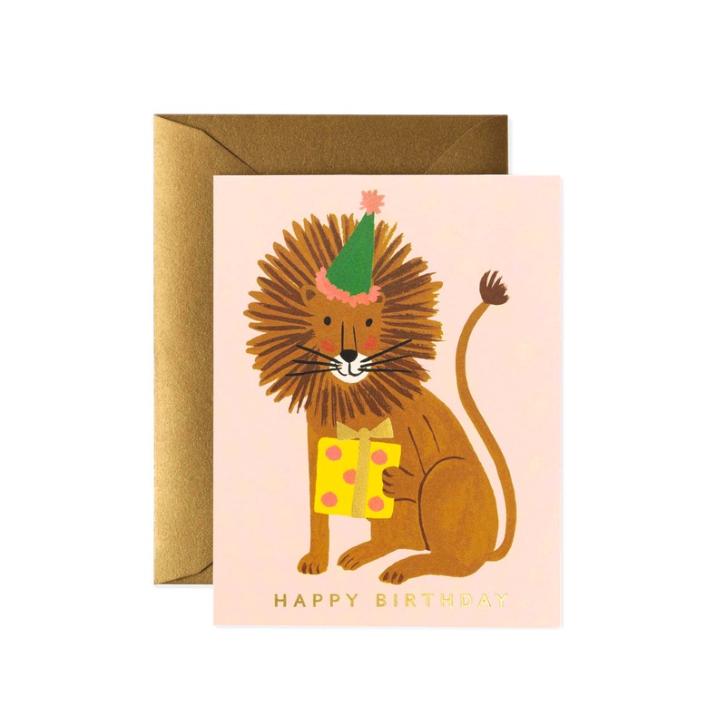 Wish your loved one a roaring great day with the Little Golden Book stylings of the Lion Birthday card from Rifle Paper Co. This illustrated card is blank inside and comes with its own high quality envelope. All Rifle Paper Co products are printed on high quality FSC-certified paper stocks.