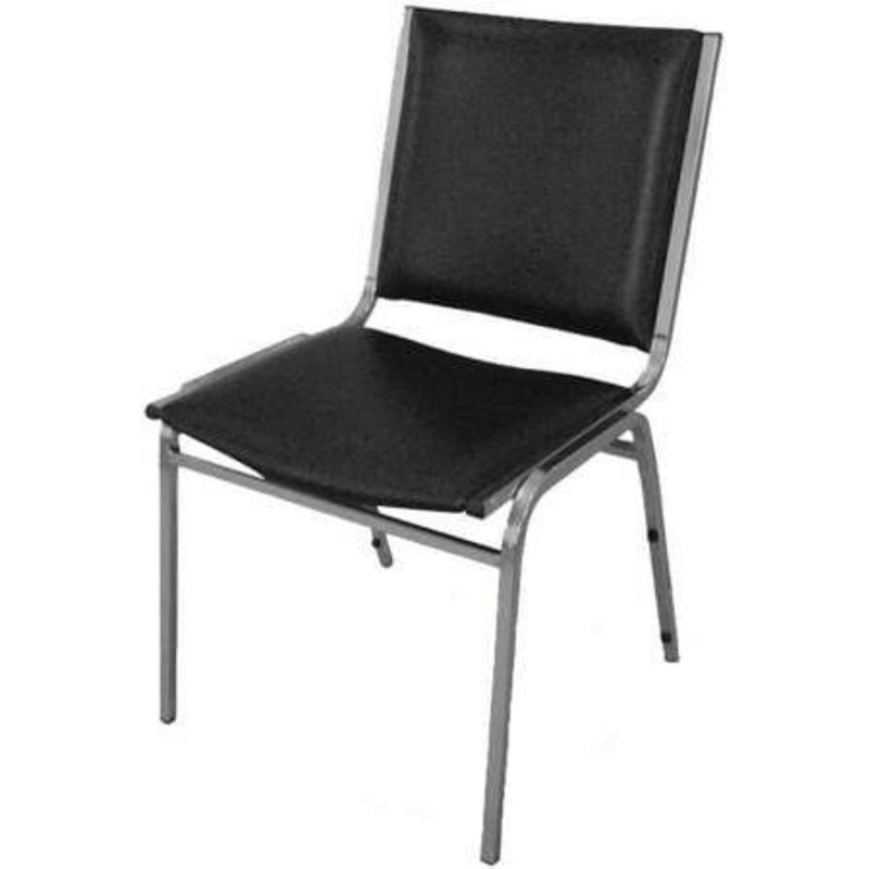 These vinyl stacking chairs from Lorell ship (4) to a carton and are a great value for any office reception or waiting room.Features: Padded seat and backrest cushionsDurable and easy to care for black vinyl upholsteryRugged 7/8" tubular steel frameSilver