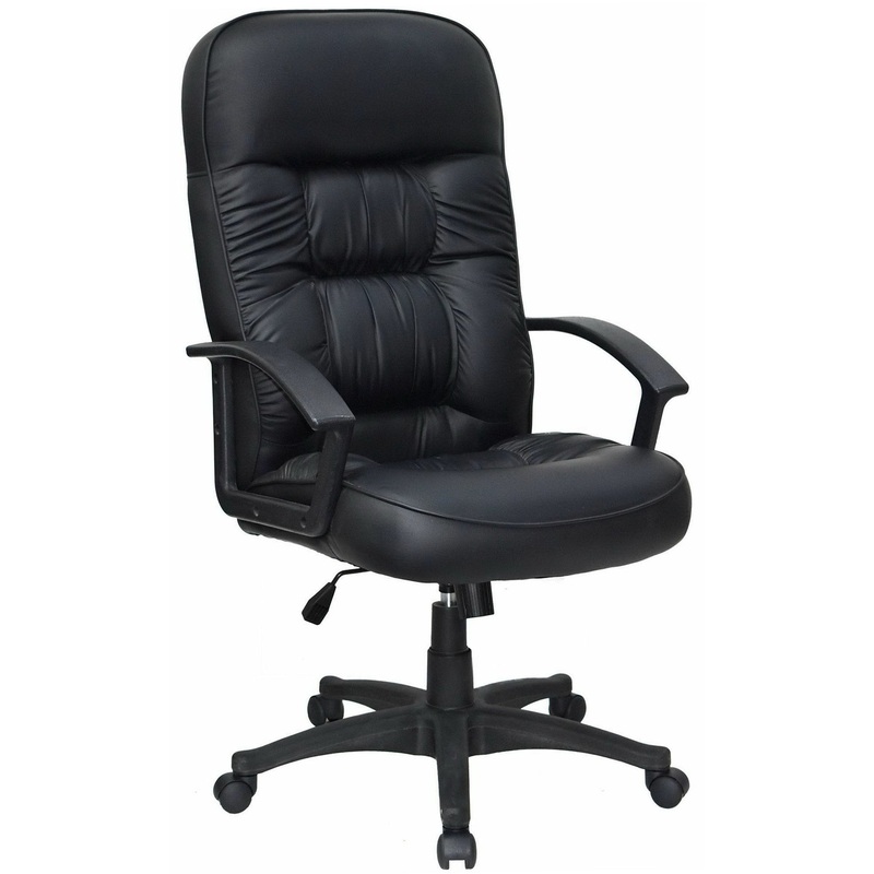 This executive chair from Lorell features large tufted cushions (genuine leather) for ultimate comfort.Features: Executive style high back backrestGenuine leather upholsteryMock leather trimPneumatic seat-height adjustmentContemporary style urethane loop a