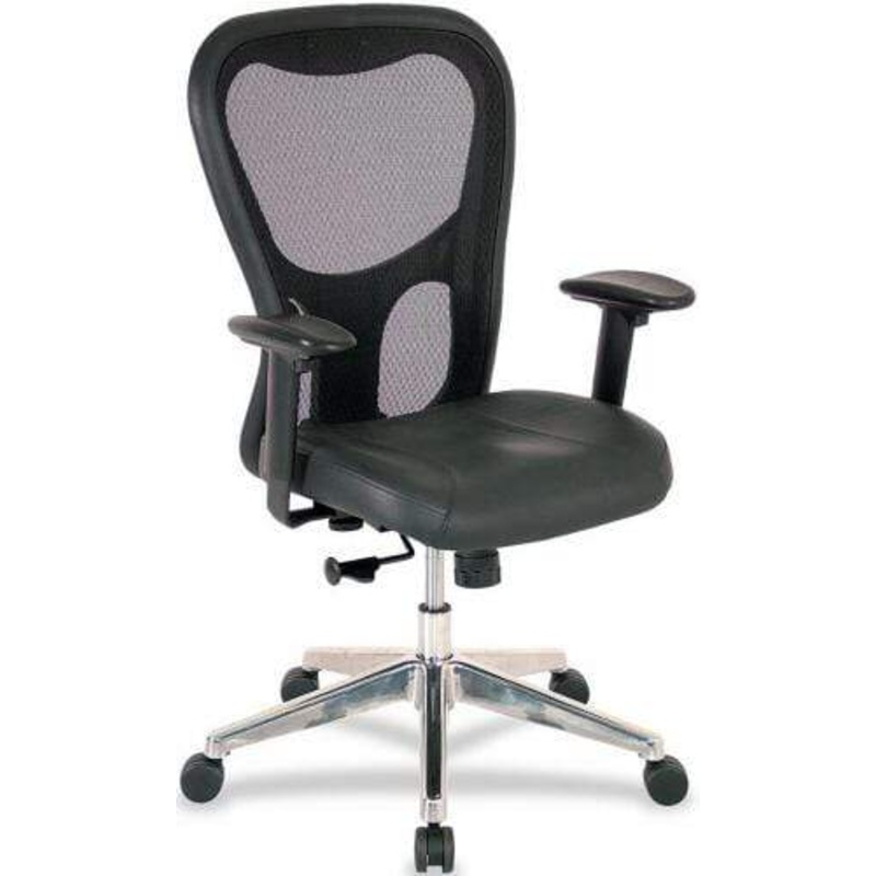 This mid back office mesh chair from Lorell features a screen mesh backrest for maximum ventilation and support. Available with or without a leather padded headrest.Features: Thick, foam padded seat cushionLeather seat upholsteryAdjustable leather padded t