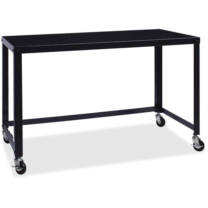 Spacious desktop offers plenty of work space for any work style. The minimalist style makes it ideal for a personal workstation or a collaborative workplace. Steel frame construction with support cross bars offers added strength. Four convenient rolling ca